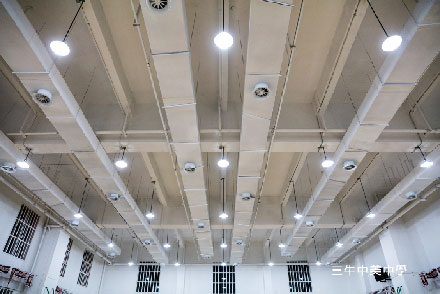 在三牛中美中学,学校教学楼完整配备了新风系统,每天24小时源源不断为室内供气,使学生免于雾霾的危害,不用开窗也能享受新鲜空气,满足人体的健康需求。此外还可以防尘,避免开窗带来大量的灰尘,有效过滤室外空气,保证进入室内的空气洁净。同时新风系统能够减少噪音污染,无需忍受开窗带来的纷扰,使室内更安静更舒适,让学生拥有了更加舒适的学习环境和运动条件。