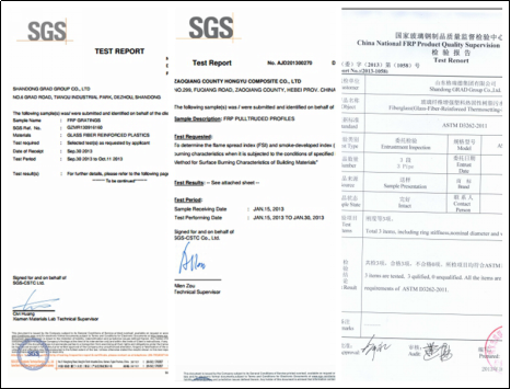 玻璃钢管道、格栅和拉挤管ASTM证书