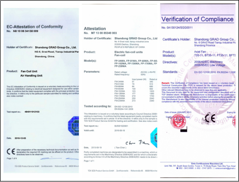 风机盘管、空调器和轴流风机CE证书