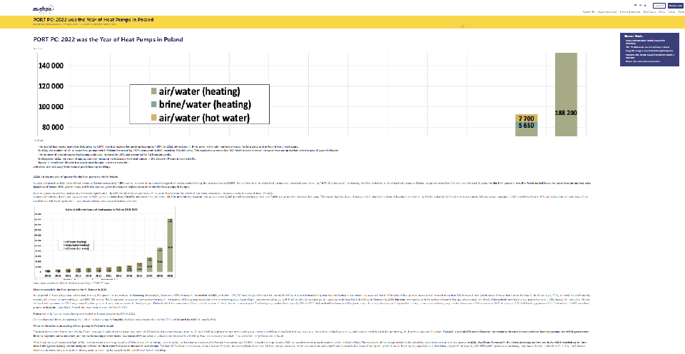• 2022年与2021相比,波兰热泵的总销售额增长了120%。在集中供暖设备方面,增长率达到130%。空气-水热泵销售量增长率137%。值得一提的是,在过去10年中,波兰的空气-水热泵市场增长了100多倍。连续五年,波兰空气-水热泵市场的销售动态同比增长约100%,这是过去两年中欧洲热泵市场最高的销售动态。