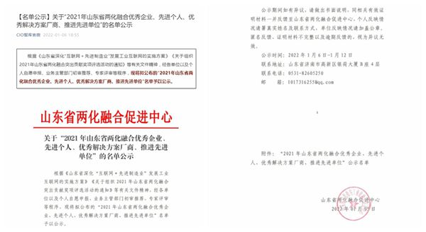 2021年12月,山东省两化融合促进中心根据《山东省深化“互联网+先进制造业”发展工业互联网的实施方案》《关于组织2021年山东省两化融合突出贡献奖项评选活动的通知》等有关文件,经业务主管部门初审推荐、专家评审等程序进行评选,格瑞德集团荣获“2021年山东省两化融合优秀企业”。