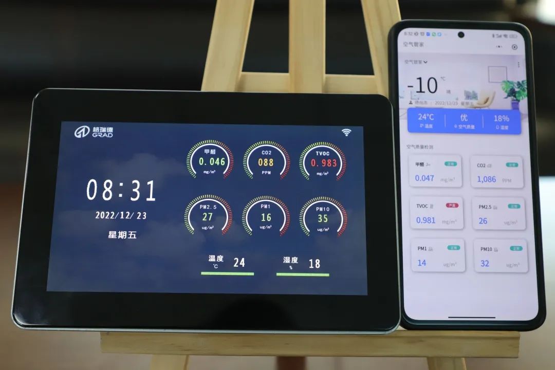 同时监测甲醛、CO2、TVOC、PM10、PM2.5、PM1、温度、湿度8种空气质量指标,帮助用户全面了解所处环境空气质量。