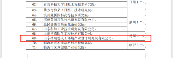 此次评选山东省新型研发机构,德州市仅两家企业入选,同时人工环境产业设计研究院有限公司由小微企业升为规上企业。