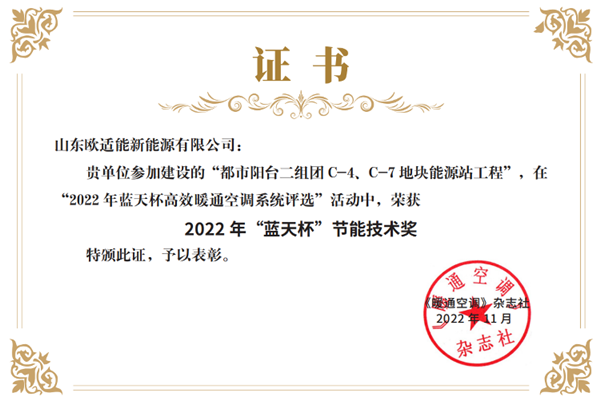 2022年12月9日,素有暖通行业“奥斯卡”之称的“蓝天杯”高效暖通空调系统评选结果正式揭晓,由格瑞德集团助力甲方单位山东欧适能新能源有限公司荣获全国2022年“蓝天杯”节能技术奖,开启机电安装工程的智能、高效、安全、绿色新篇章。
