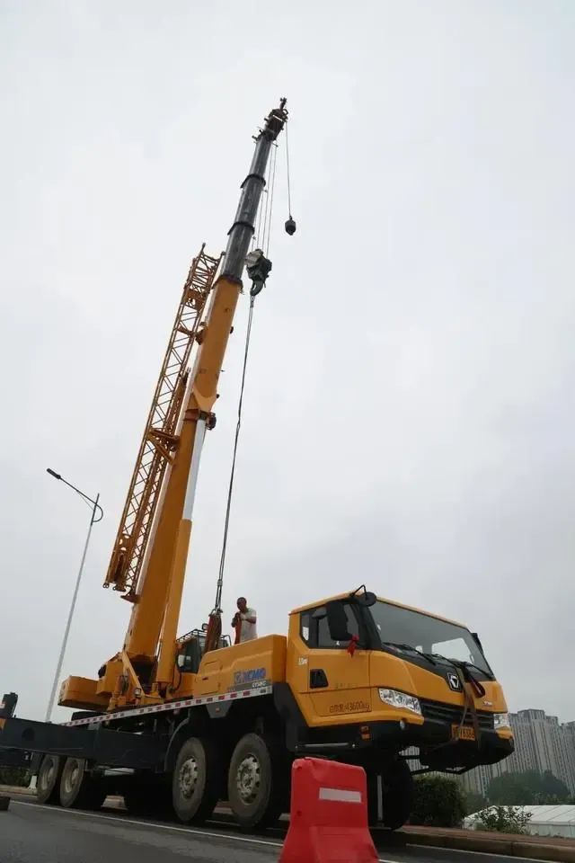 工程车正在吊装暖气管道