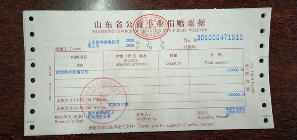 2020年,一场突如其来的疫情袭来 ,格瑞德面对疫情大考,勇毅担当,临危受命捐出20万元助力抗击疫情,高质、高效完成陆军80集团军医院、阳光融和医院、临沂隔离病房等多项疫情防控工程,并捐赠75万元气溶胶空气净化设备,助力疫情防控攻坚战。