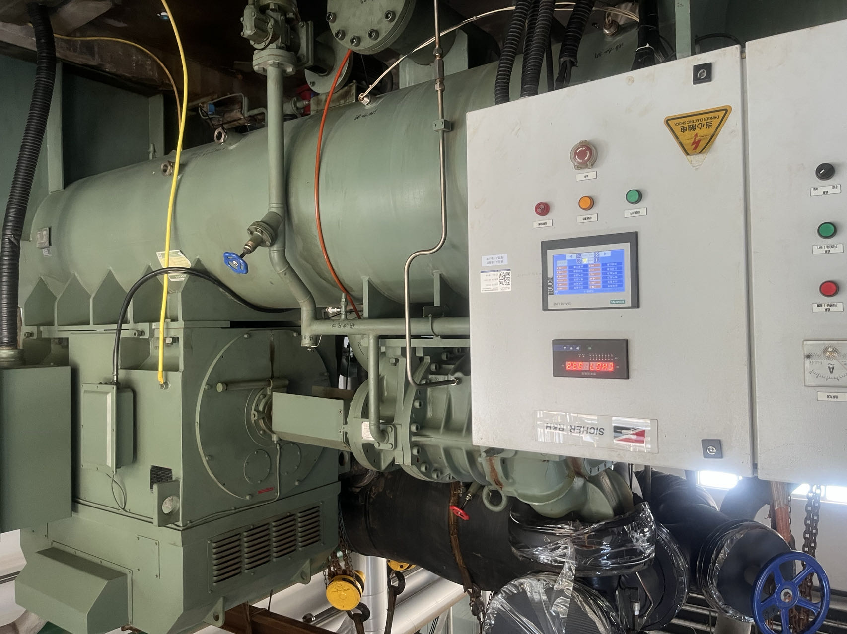 使用的是顿汉布什立式海水源螺杆机组,格瑞德公司为其定做了海水源专用换热器进行替代。自 2019 年至今,机组运行稳定,有效地满足了烟台海阳电厂的特殊需求,保障了其生产运营过程中的空调系统正常运行。
