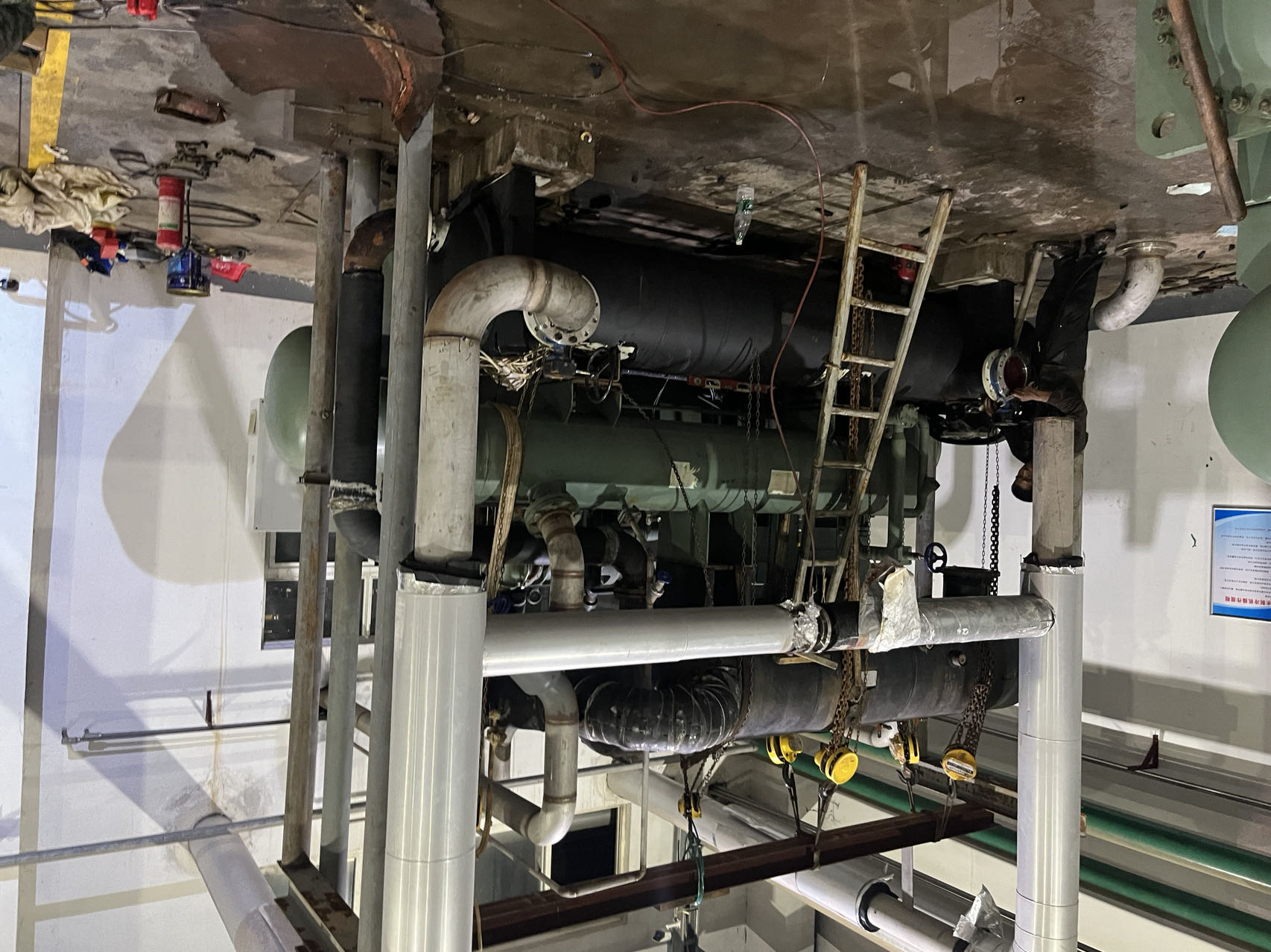 现场使用的南京五洲海水源水冷螺杆机组共有 3 台,自 2015 年投入使用后,由于冷凝器长期接触海水,受到严重腐蚀,导致换热器内的铜管损坏。格瑞德公司根据现场的实际情况,重新为其制作了具有更强耐腐蚀性的换热器,采用了复合端板以及镍白铜铜管。这一举措有效解决了海水腐蚀的问题,延长了设备的使用寿命,保障了机组的正常运行。