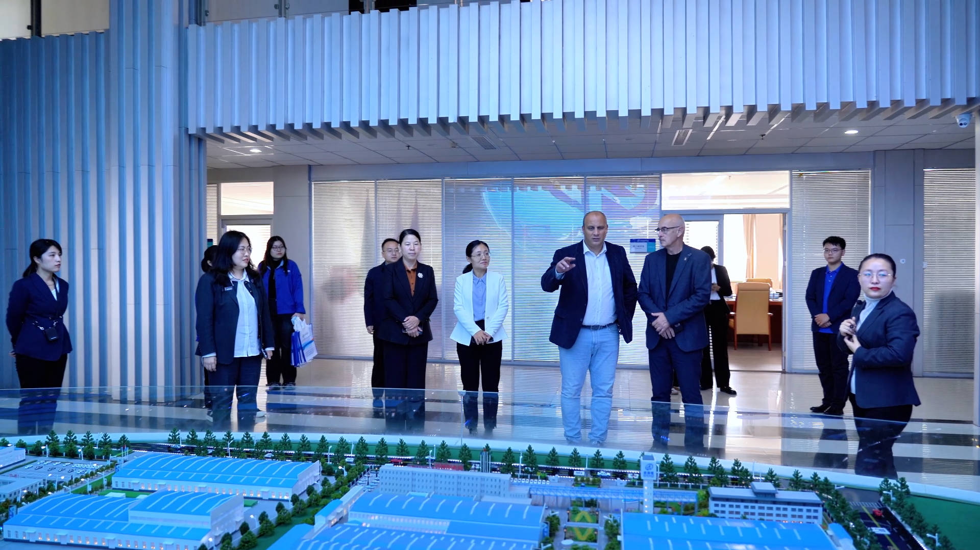 考察团参观了集团展厅,国贸销售一部部长程志艳将集团四大板块的产品特性、经典业绩、适用范围等向考察团作了详细介绍,并向考察团针对性介绍了集团主营产品在各自领域所取得的成绩及研发实力。考察团一行对集团的各项硬实力表示赞赏,并表示此次参观考察及时发掘了双方经贸合作的可能性,将在参观后就当地项目具体需求进一步深入沟通。