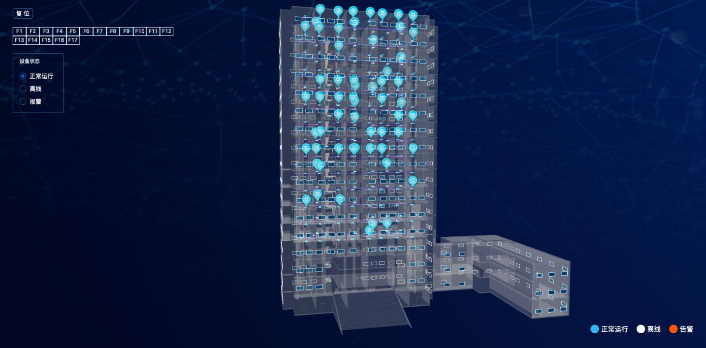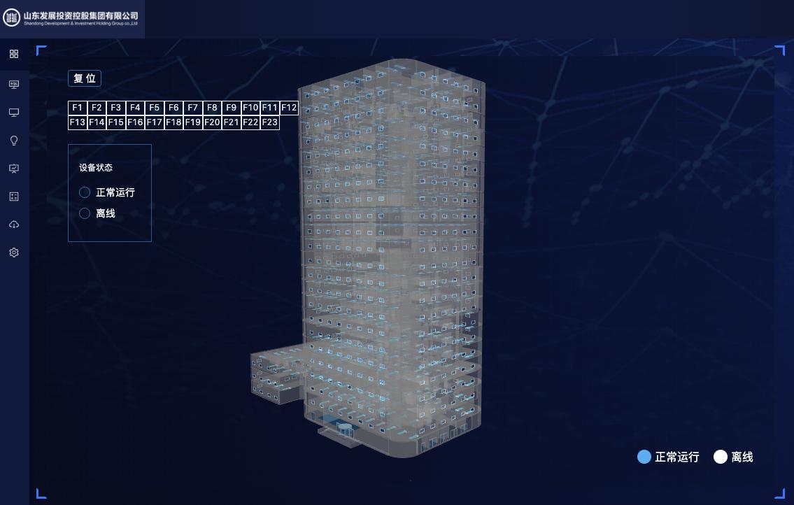 该项目以智慧楼宇为整体目标,以智慧暖通软件平台为底座,实现了中央空调系统、新风系统、消防系统、能源管理、环境监测整体智能化,并将系统与园区管理系统进行高度集成,实现了设备及数据的互联互通。