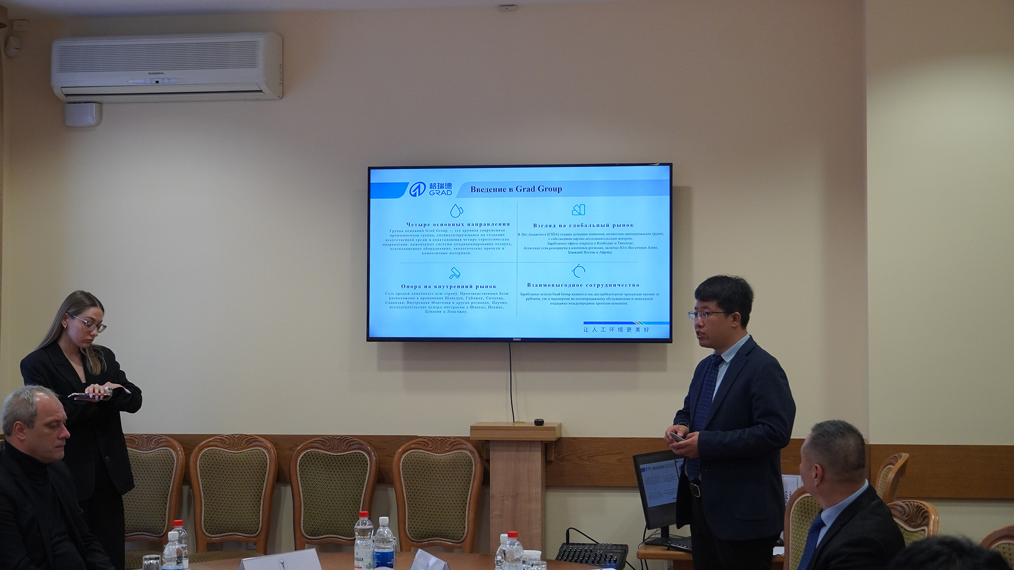 在白俄罗斯,格瑞德集团董事长随团拜访了波洛茨克市执行委员会主席马尔科维奇,并参观了波洛茨克玻璃纤维公司、基马别尔公司,与当地企业家进行了深入交流。