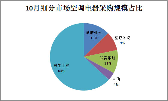 从产品方面看,10月清洁取暖设备采购规模18.1亿元,占比62%;排在第二的是中央空调,采购规模4.3亿元,占比27%;民用空调位居其三,采购规模为1.23亿元。
