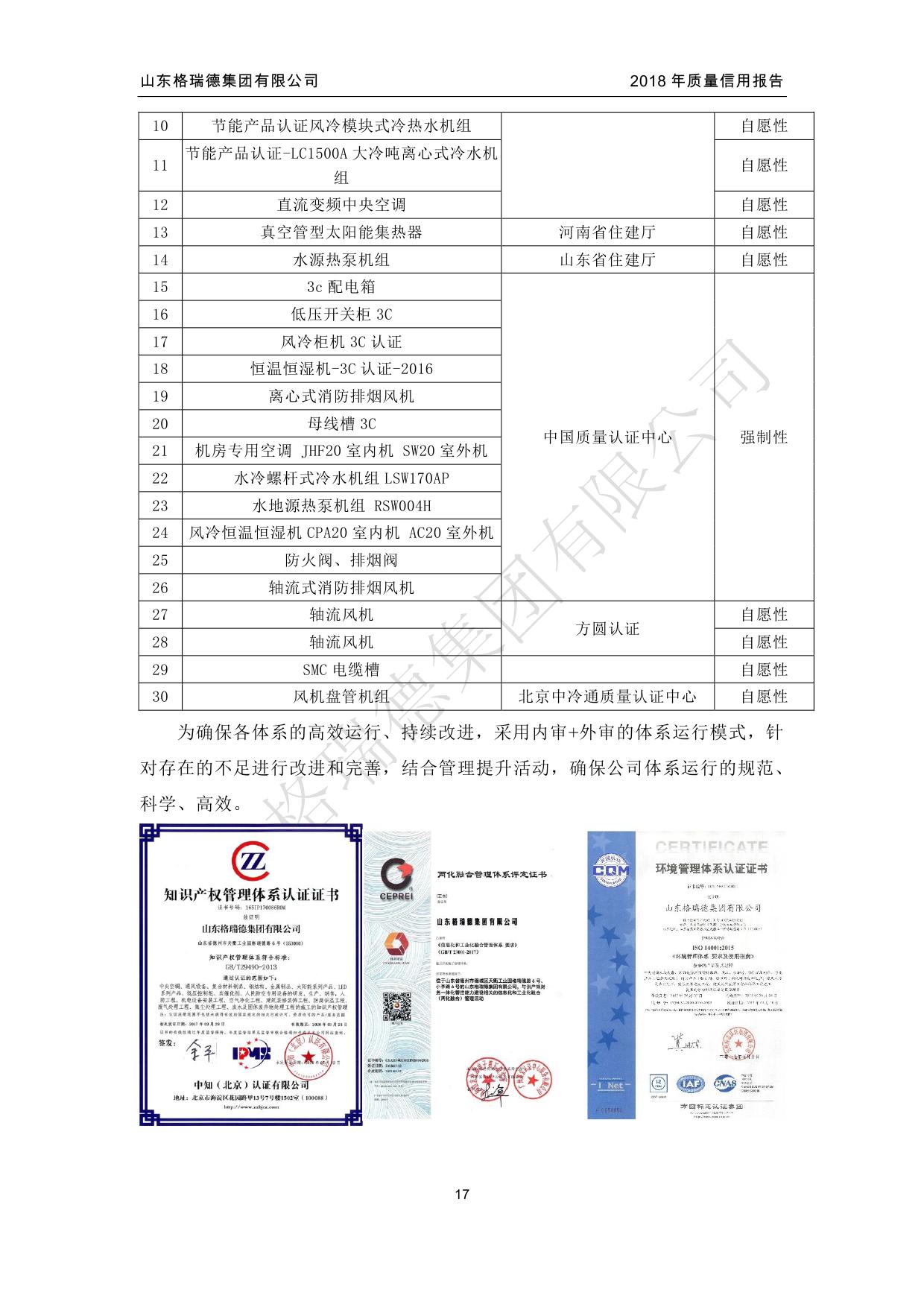 拥有国家机电设备安装壹级资质,环境保护工程二级资质,建筑装修装饰工程专业承包二级资质,钢结构工程三级资质,并获得了中国制冷空调设备维修安装资质,集团生产的空调产品获得国家制冷设备生产许可证,3C中国国家强制性产品认证、CRAA中国制冷空调行业权威性产品性能认证,压力容器国家特种设备设计、制造许可证,制冷主机、风机产品荣获中国节能产品认证。