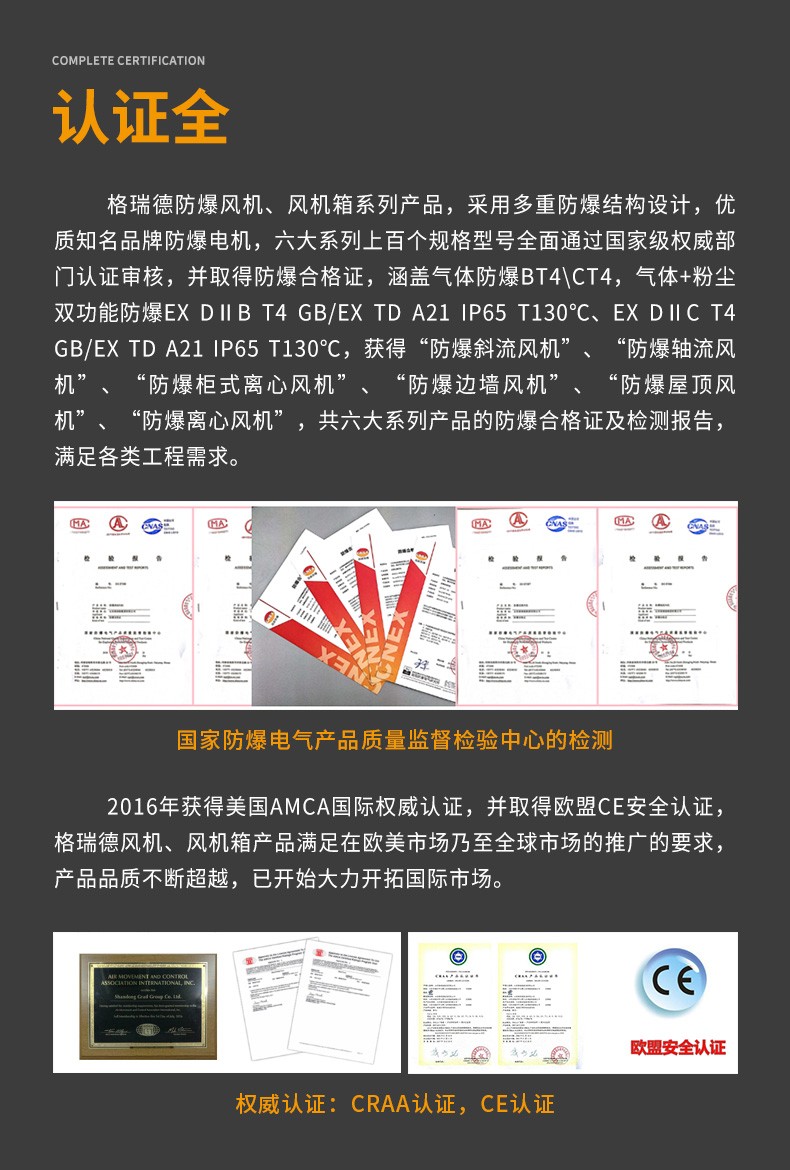 拥有国家机电设备安装壹级资质,环境保护工程二级资质,建筑装修装饰工程专业承包二级资质,钢结构工程三级资质,并获得了中国制冷空调设备维修安装资质,集团生产的空调产品获得国家制冷设备生产许可证,3C中国国家强制性产品认证、CRAA中国制冷空调行业权威性产品性能认证,压力容器国家特种设备设计、制造许可证,制冷主机、风机产品荣获中国节能产品认证。