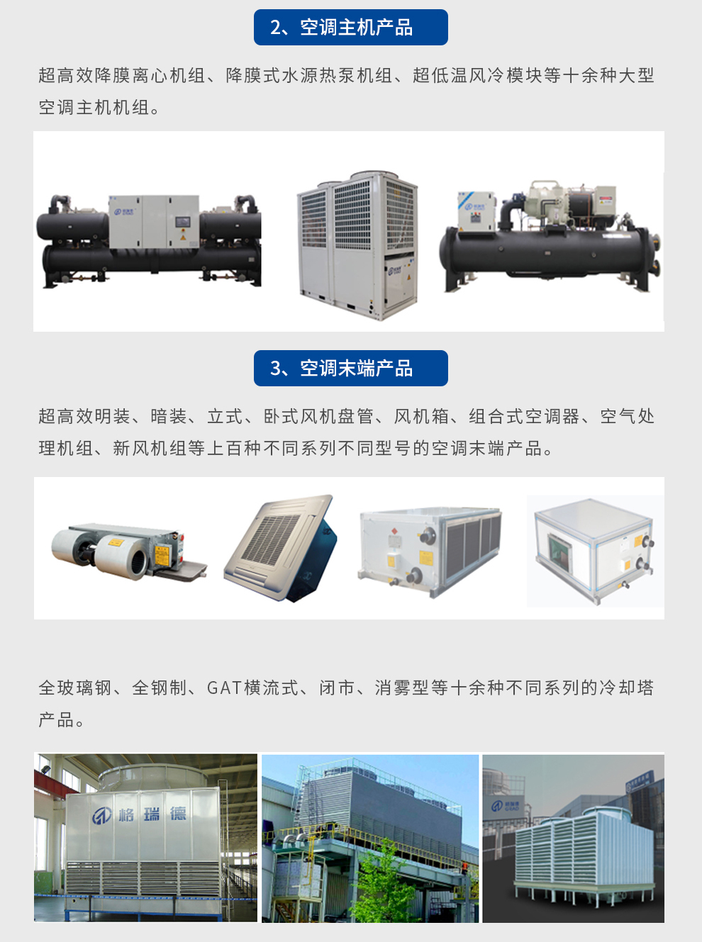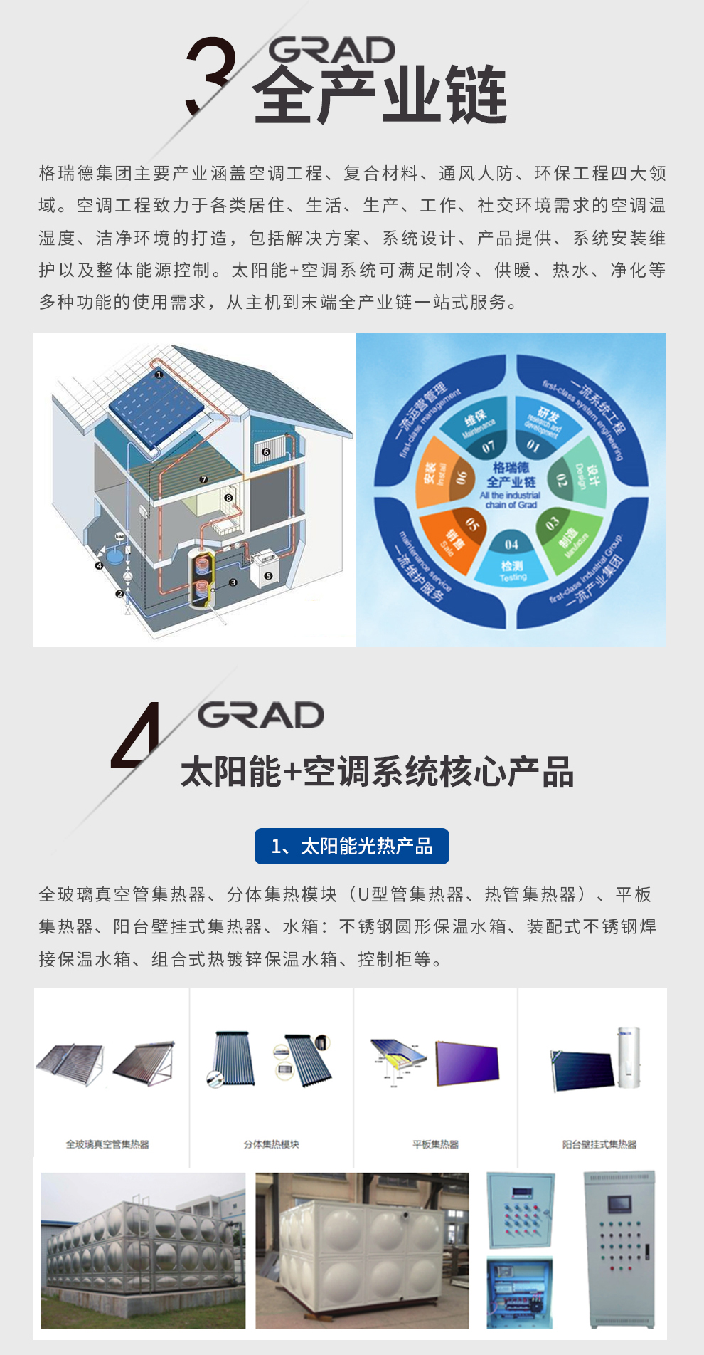 格瑞德致力于让人工环境更美好,通过打造空调工程、通风人防、复合材料、环保工程领域的全过程解决方案来满足客户需求,格瑞德构建了包括品牌规划、系统设计、技术开发、产品制造、整体施工、维护服务、检测认证、人才交流、产业集群的全生命周期产业链和产业生态。
