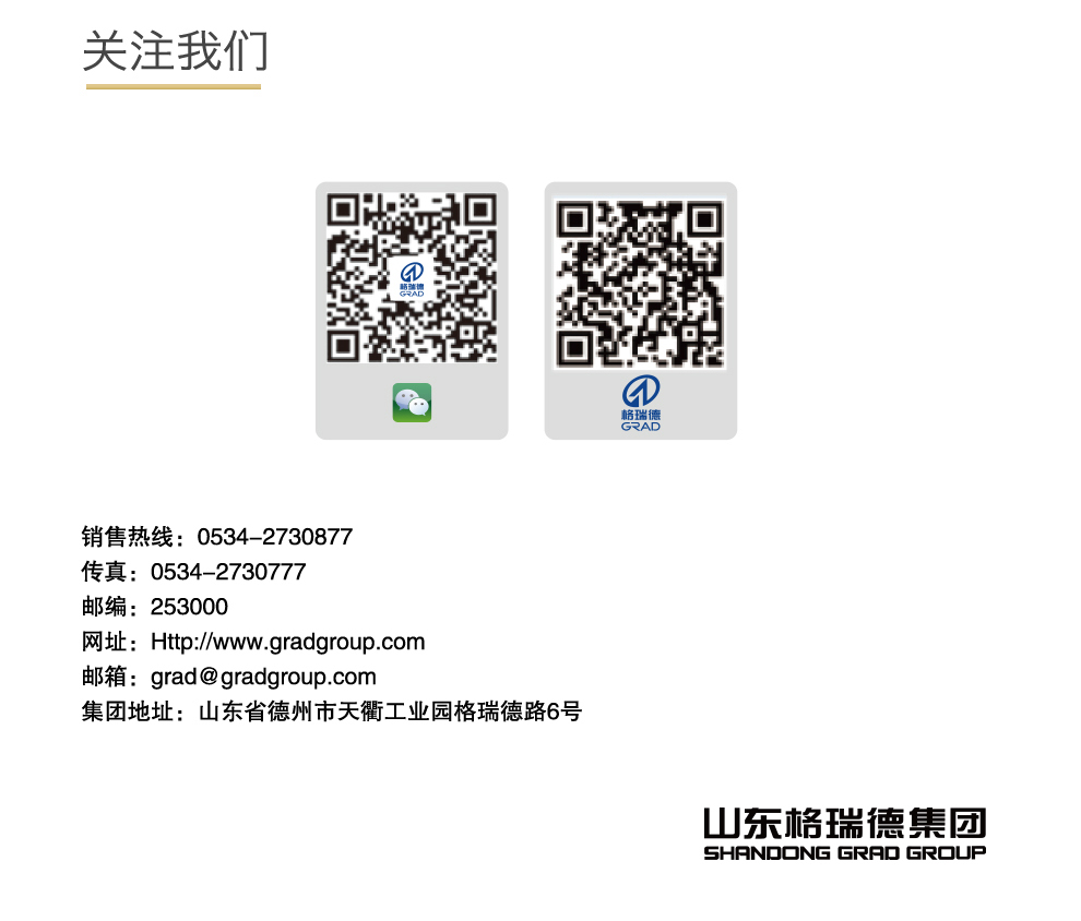 “用户的满意”是格瑞德永远的追求,是格瑞德价值的体现。坚持“全程服务,德誉百年“的服务理念,通过优质的售前、售中及售后服务,使用户切身体会到格瑞德的热情和真诚,将生产制造体系上的质量控制全面延伸到服务保障体系上,实现了服务质量的全面提升。