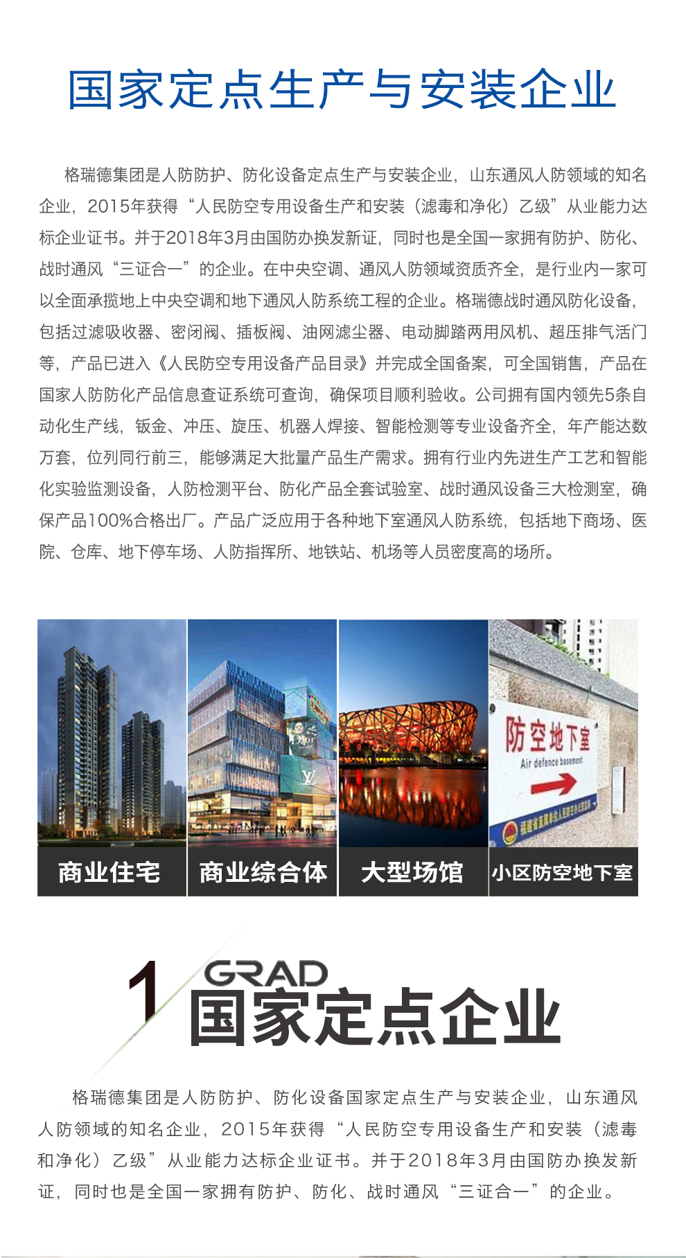 格瑞德致力于让人工环境更美好,通过打造空调工程、通风人防、复合材料、环保工程领域的全过程解决方案来满足客户需求,格瑞德构建了包括品牌规划、系统设计、技术开发、产品制造、整体施工、维护服务、检测认证、人才交流、产业集群的全生命周期产业链和产业生态。
